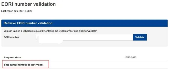 查询结果显示:This EORI number is not valid.则EORI号码无效。
