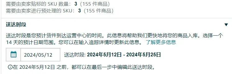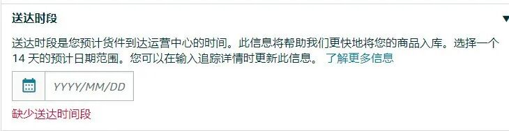 因此,为了避免接到亚马逊的警告,卖家需要在创建货件时提供精确的预计送达时间,并确保货件能如期在该时间段内送达。