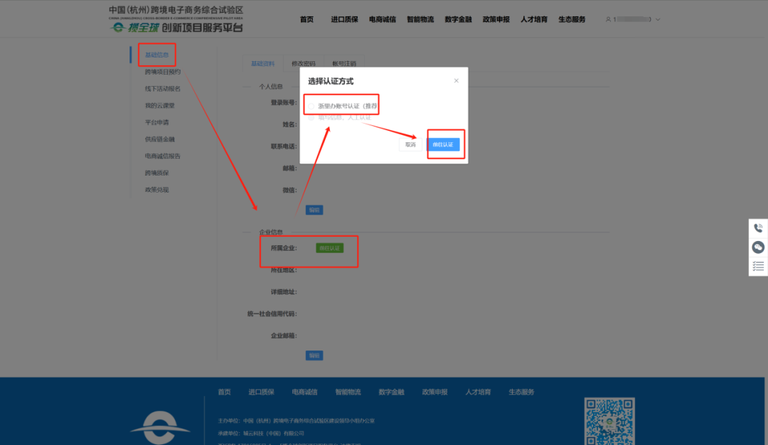 非企业账户,点击蓝底文字按要求进行企业身份认证(企业需具有跨境电商出口资质(海关备案,以 9710/9810/9610 和 1210 四种监管方式出口)。