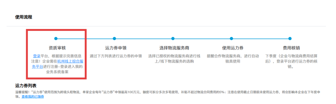 1、企业申领的“运力券”额度可以拆分多次多笔使用,如A企业与物流商交易的单笔物流运费为10万元(10万元*5%=5000元),则从100万元的运力券额度中减去5000元。以此类推,直到100万元额度使用完毕。